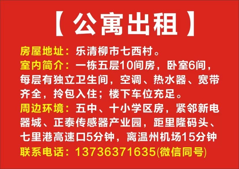 单间落地5层 周边有柳市镇第五中学 第十小学 超市 医院 菜市场 出门有公交 白慎河休闲步道 沿河广场 七里港高速公路收费站仅3分钟