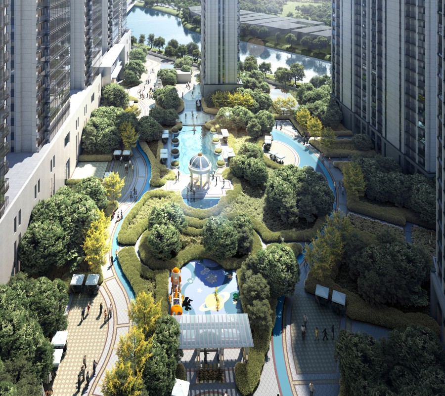【双公园环绕】项目北侧为市政公园,南侧沿河设置滨河景观带,集休闲、观光等一体,尽享繁华之上的静谧。