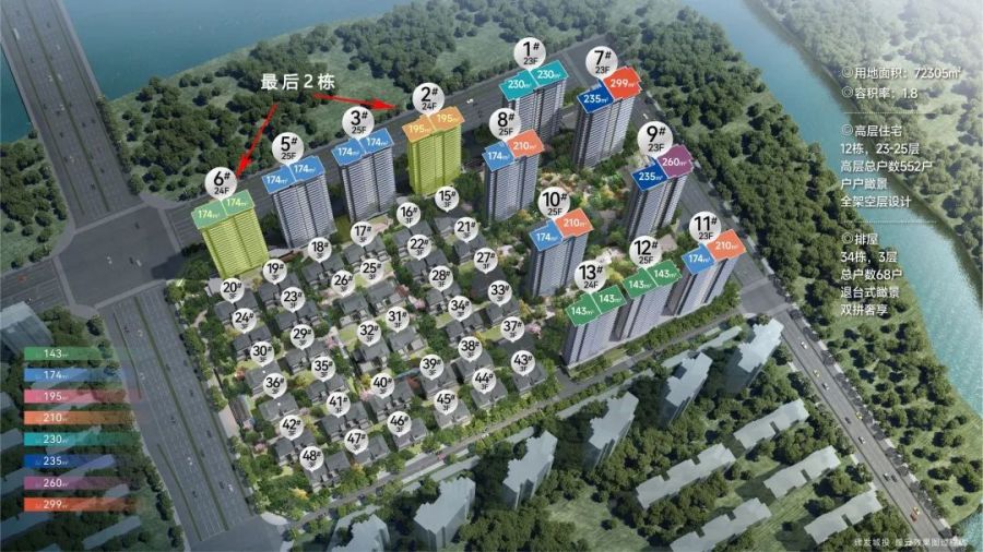 【规划特色】规划12幢高层住宅及34栋排屋围合式院落布局,遵循“户户瞰景”设计理念,汲取瓯派建筑元素并特邀GAD首席设计师蒋愈、