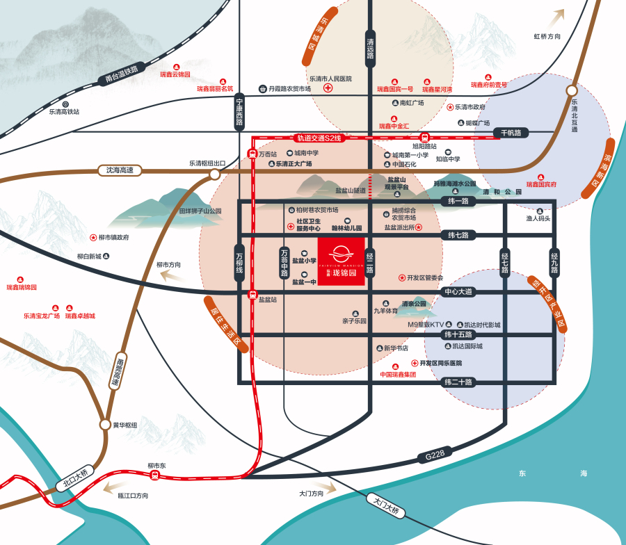占据乐清主干道清远路沿线,近距离盐盆山隧道,临近S2盐盆站