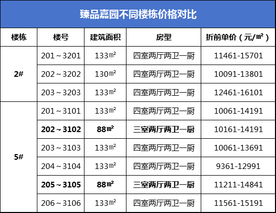 ▲臻品嘉园价格(不同楼栋同户型比对)