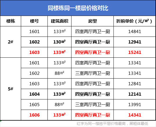 本期臻品嘉园共推出了2栋,都是高层楼栋,我们可以看看具体的价格对比