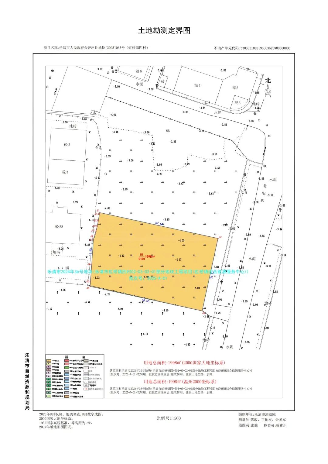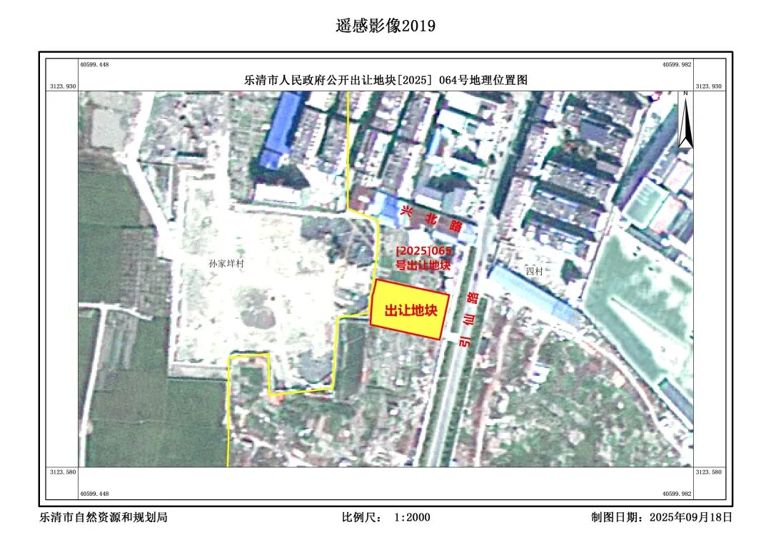乐清市人民政府公开出让地块[2025]065号(虹桥镇四村)挂牌出让,地块位于乐清市虹桥镇四村,出让面积为1998平方米(2.997亩),土地主用途为其他公用设施用地,竞地起始价为350万元,竞买保证金为70万元,竞地价增价幅度为20万元,折合楼面价为1751.8元/㎡。