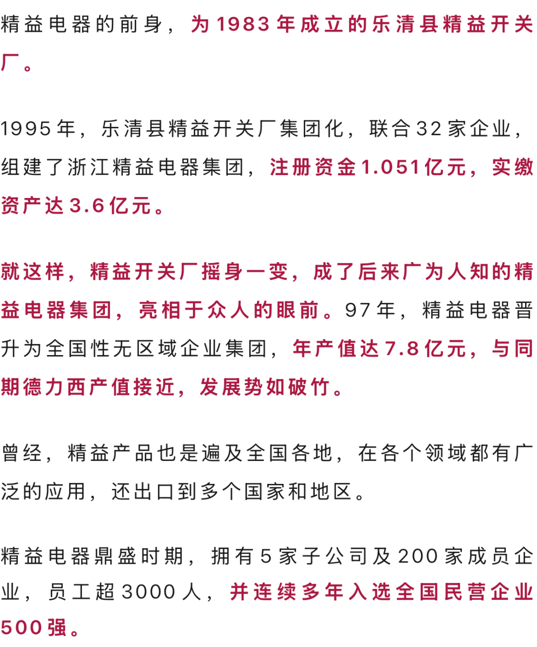 精益电器是一家大型电气制造企业,曾是乐清电气产业早期代表,中国民营企业500强,总部位于乐清经济开发区。