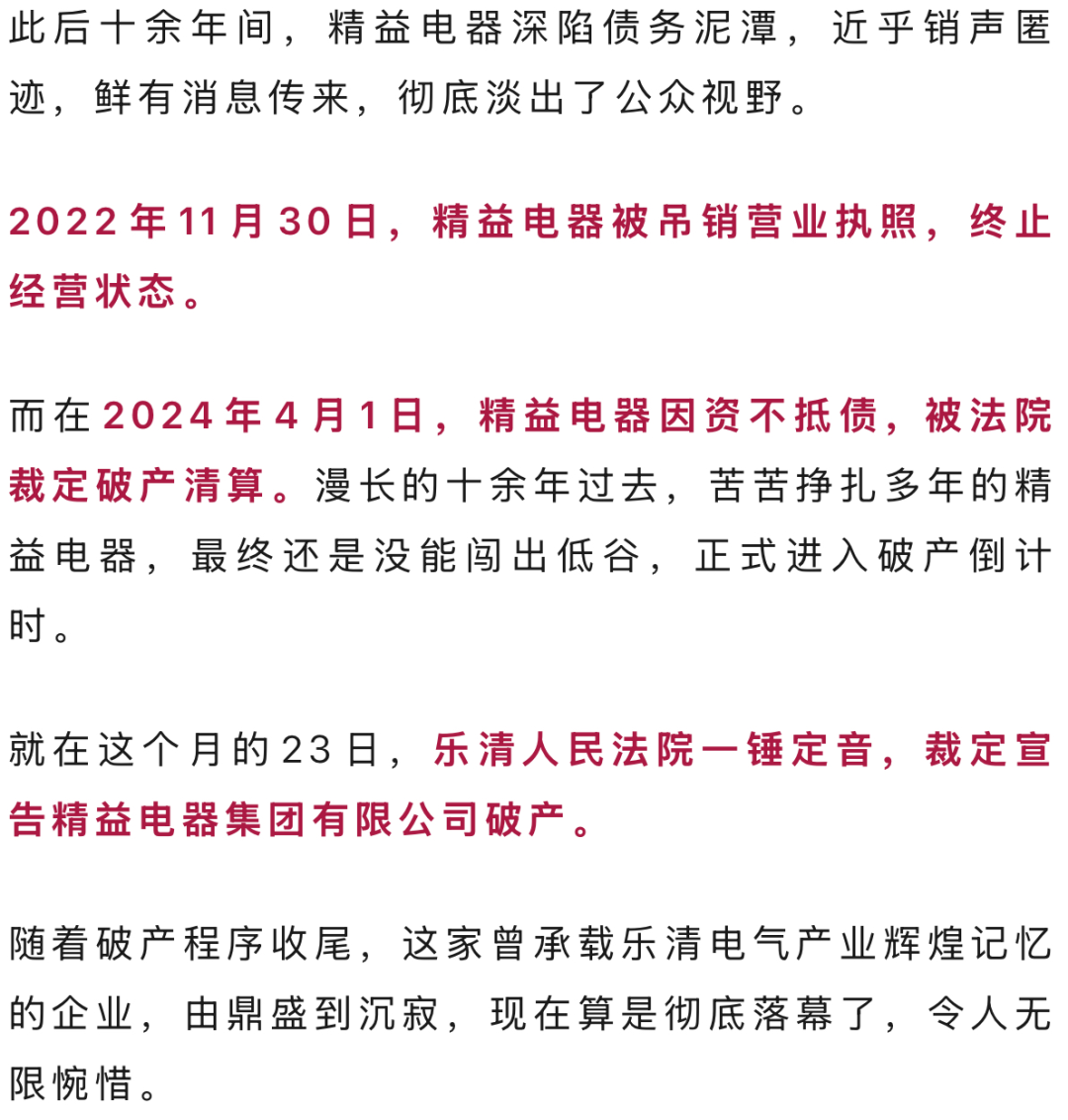 近年来,不断有一些我们曾经耳熟能详的企业传来破产消息。而这家曾在乐清市场叱咤风云的老牌集团,因资不抵债、债务危机难解,最终倒在了行业寒冬之下。