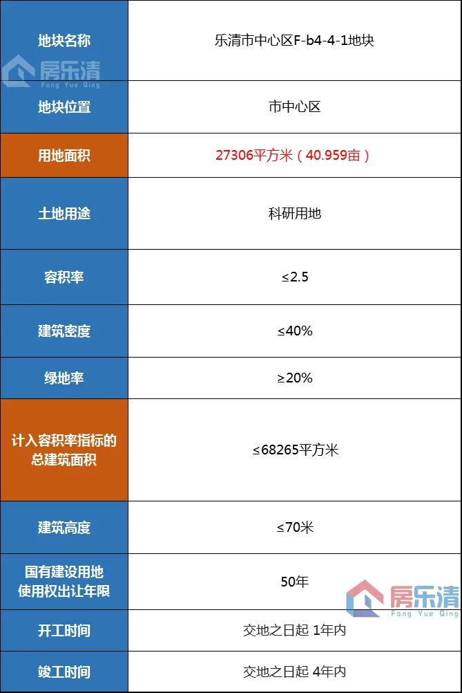 乐清市中心区F-b4-4-1地块挂牌出让,该地块位于市中心区,出让面积27306平方米(40.959亩),土地主用途为科研用地,竞地起始价为6350万元,竞买保证金为1270万元,竞地价增价幅度为50万元,折合楼面价约为 2325.5元/㎡。