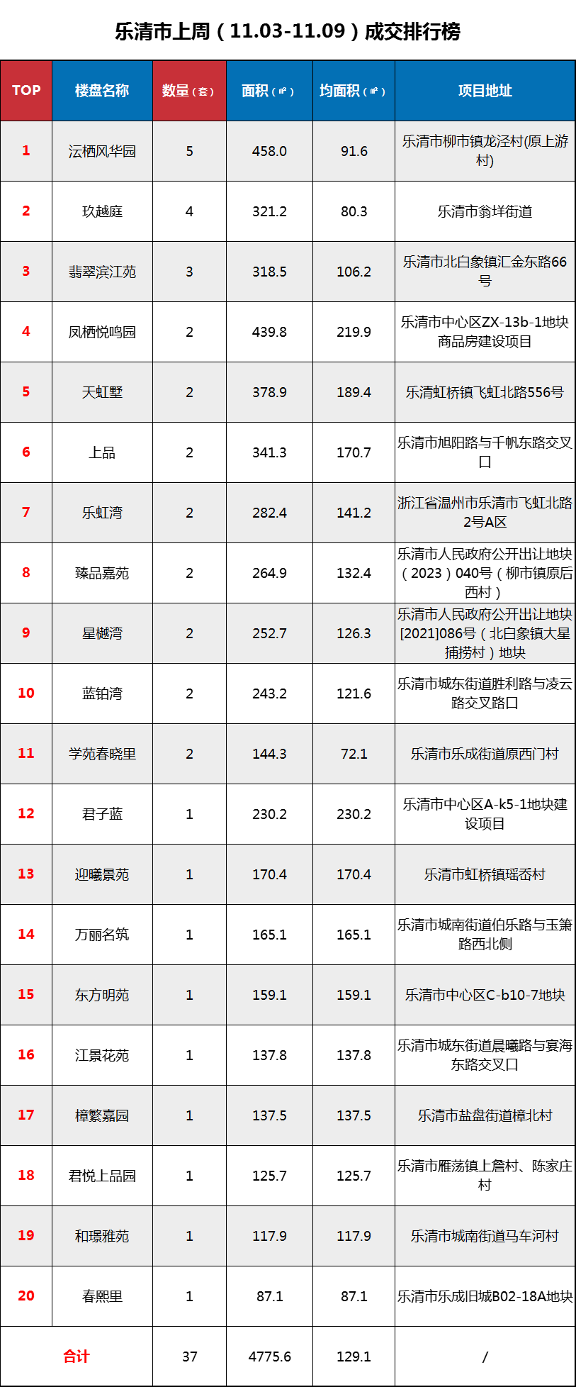 【11.03-11.09】乐清上周新房网签37套,沄栖风华、玖越庭、翡翠滨江苑占前三!