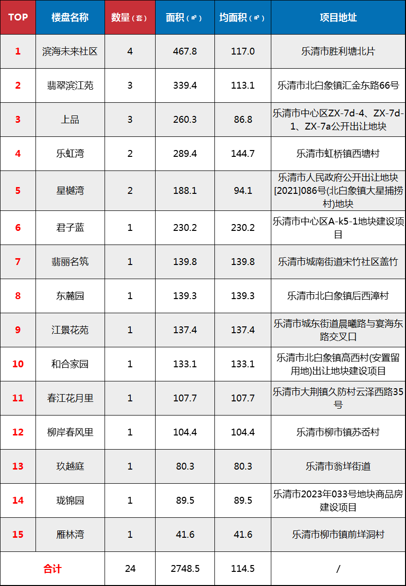 乐清新房资料来源于相关网站,由于网签数据存在一定滞后性和时效性,统计结果仅供参考。