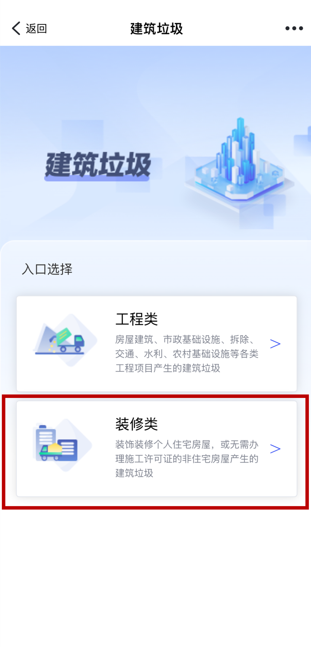 ② 点击进入后选择“装修类”—“预约收运”